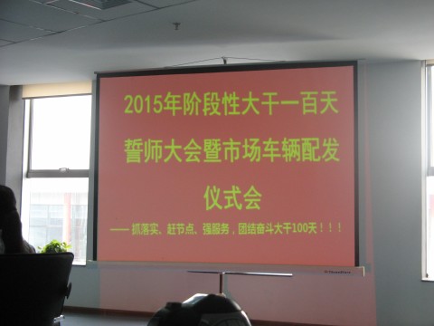 公司“2015年階段性大干一百天誓師大會(huì)暨市場(chǎng)車(chē)輛配發(fā)儀式”會(huì)勝利召開(kāi)